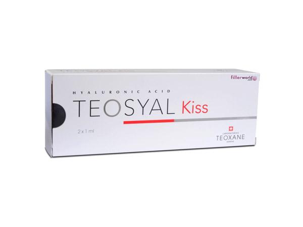 Teosyal Kiss — филлер мягкого действия, применяется для коррекции формы, объема губ. В основе гиалуроновая кислота высокой концентрации, название серии разработано специально для губ. Производится в Швейцарии, высокая степень пластичности позволяет помимо коррекции, позаботится о нежной коже области рта. Результат сохраняется от 6 до 9 месяцев, обладает накопительным эффектом. Приобрести можно 2 шприца по 1 мл за 12000 руб.