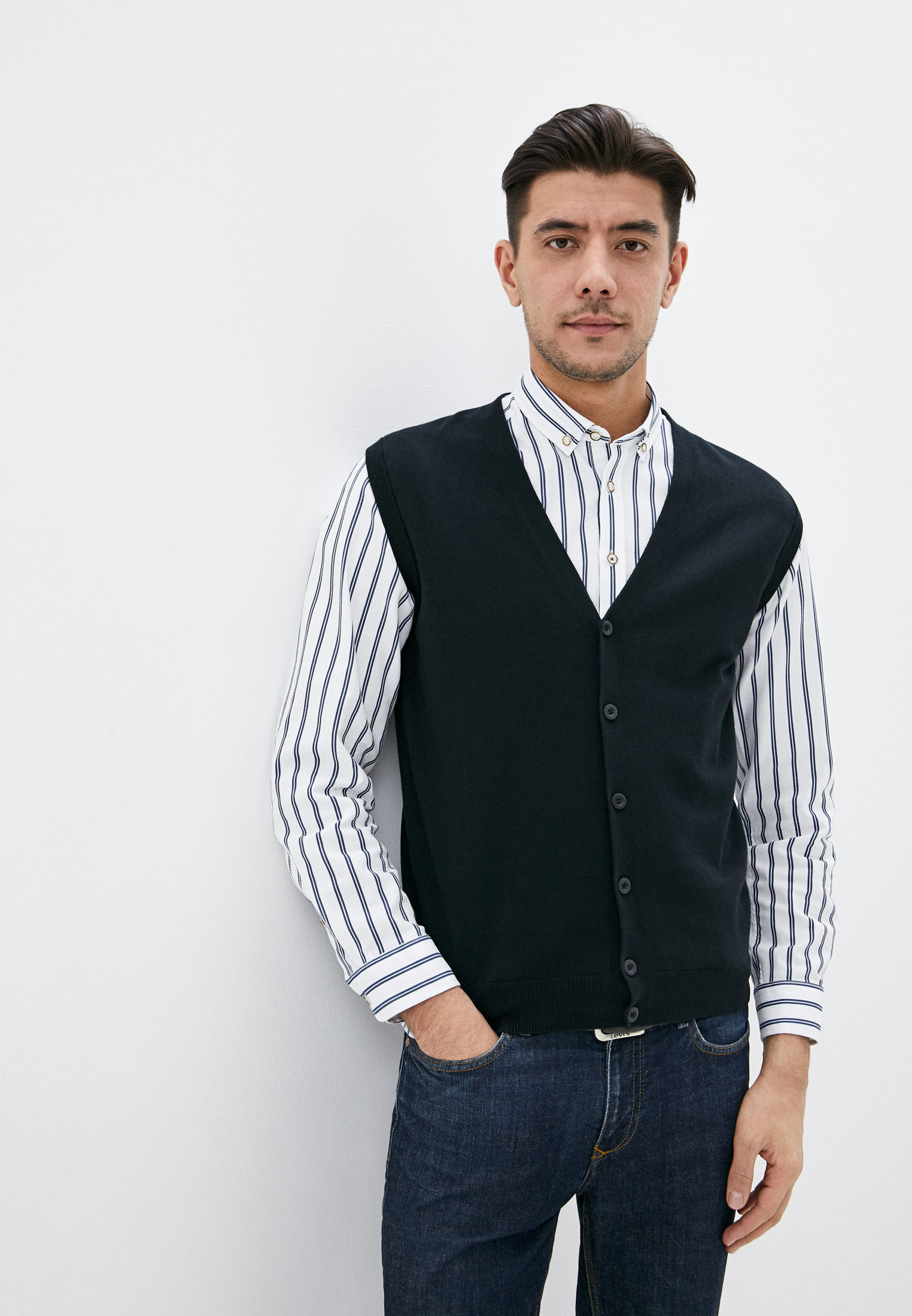 Классическая приталенная мужская жилетка из новой коллекции интернет-магазинаMen’sClub. Изделие застегивается на одну пуговицу, имеет два боковых кармана с прорезью. Простое и стильное решение для тех, кто всегда в движении.
