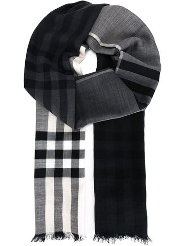 Черный с белым шарф ‘Gauze Giant’ из микса шерсти и шелка от Burberry.