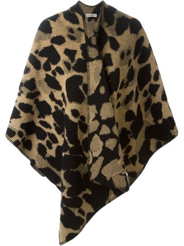 Бежевая с черным накидка из смеси шерсти и кашемира с леопардовым принтом от Burberry.