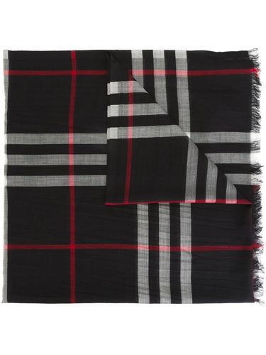 Черный шарф в клетку из смеси шелка и шерсти от Burberry.