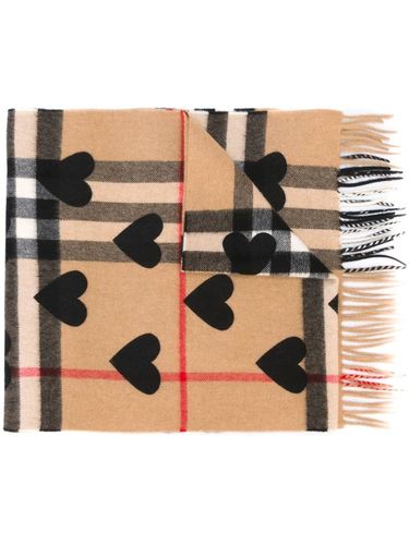 Разноцветный кашемировый клетчатый шарф с сердцами от Burberry.