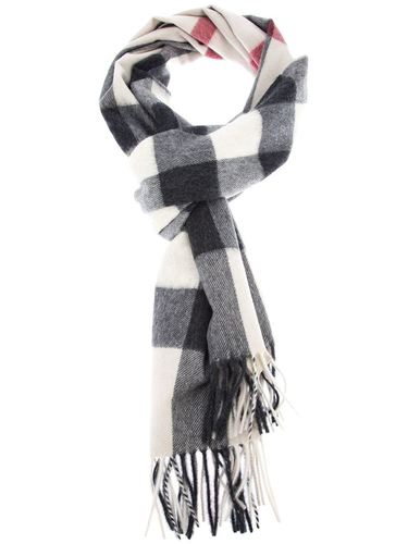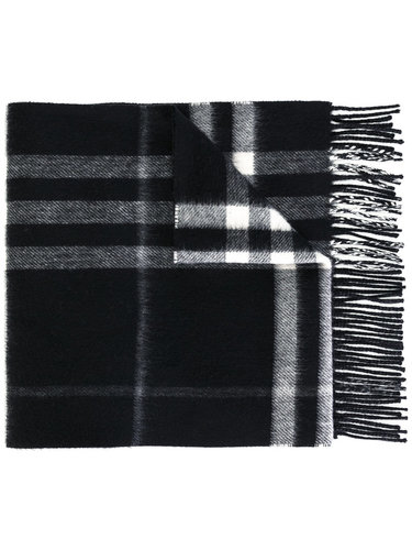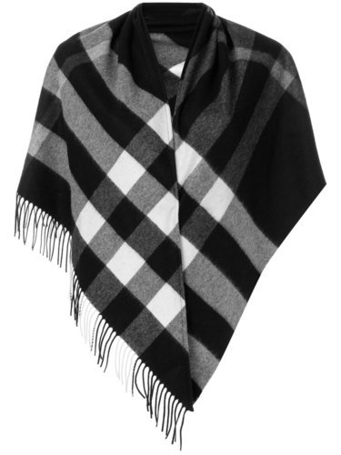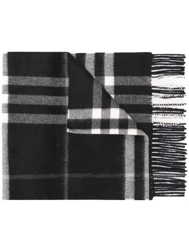 Черно-белый кашемировый шарф в клетку ‘Nova Check’ от Burberry. Фирменный рисунок, отделка бахромой по нижним краям.