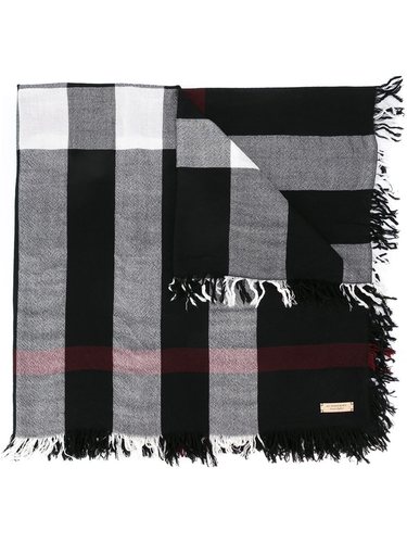Black and white merino wool checked scarf from Burberry.