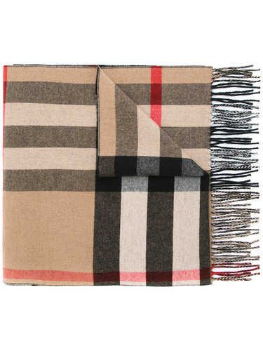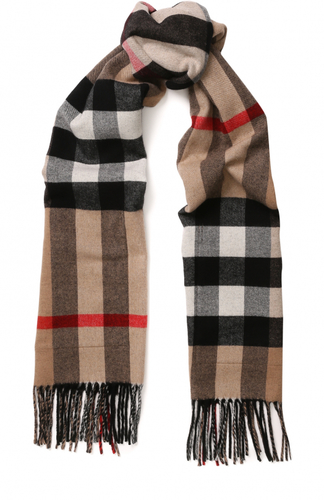 Клетчатый шарф от Burberry (Берберри). Узор в клетку и края с бахромой. Состав: Кашемир