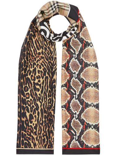 Шарф с принтом от Burberry (Берберри). Леопардовый принт, узор в клетку, рисунок с клеткой Haymarket и подвернутый подол. Цвет: разноцветный.