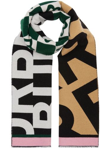 Шарф с логотипом от Burberry (Берберри). Вязка интарсия, узор с монограммами, фирменный логотип FF и необработанные края.