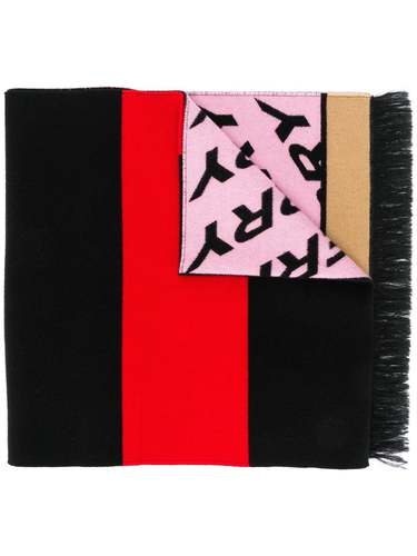 Шарф в полоску с монограммой от Burberry (Берберри). Узор с монограммами, полосатый узор и края с бахромой.