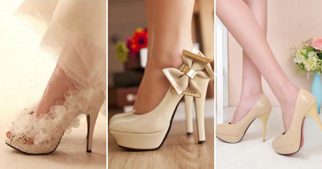 - Лакированные или матовые туфли цвета слоновой кости на высоком каблуке смотрятся очень богато и легко. Эффект «отсутствия обуви» хорошо работает для привлечения внимания к стройности ног. В сочетании с платьем-футляром выше колена или юбкой-карандаш такие туфли добавят сексуальности обладательнице без малейшего намека на вульгарность.