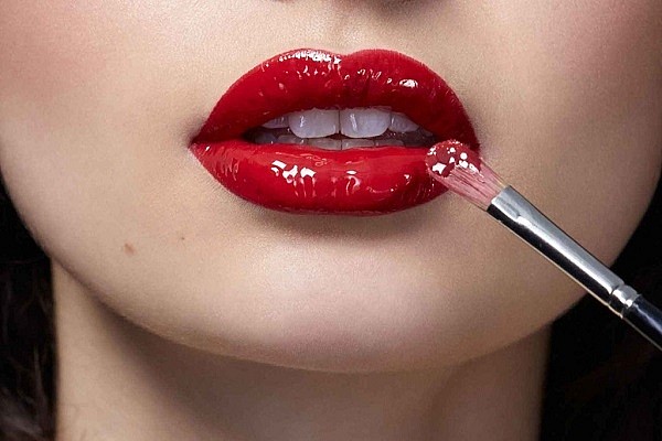 - При нанесении помады с помощью кисточки используйте угловую щетку. Это помогает в обеспечении более четких губ.