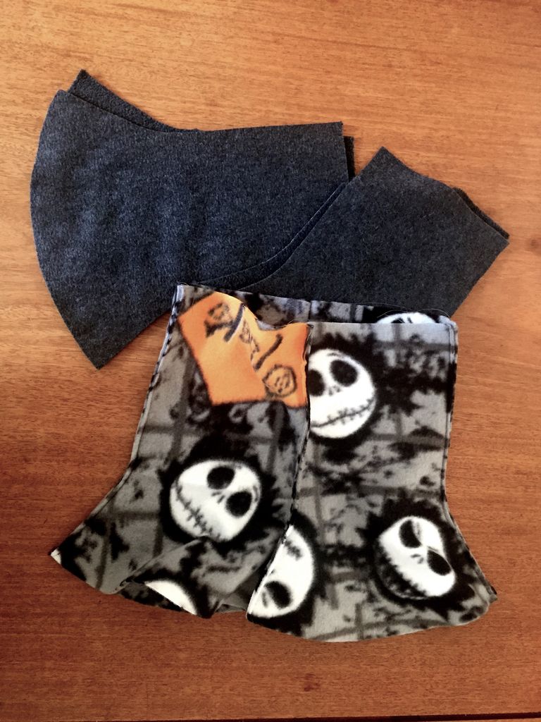 Также понадобится флисовая ткань, можно использовать и старые вещи, к примеру, плед или толстовку. Материал можно комбинировать, используя для лицевой части яркий и нарядный флис, а для изнанки – простой, как и сделано в данном проекте.
