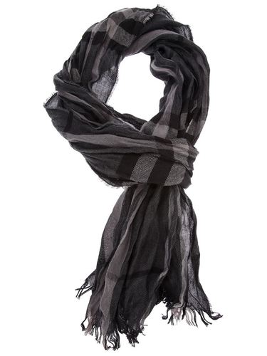 Черно-серый шерстяной многослойный шарф в клетку от Yohji Yamamoto.