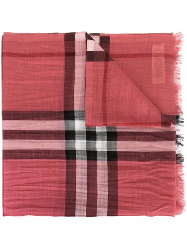 Розовый шелково-шерстяной шарф в клетку от Burberry.