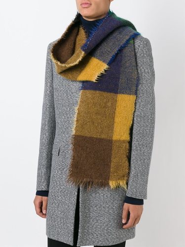 Разнцоветный шерстяной шарф в клетку от Pierre-Louis Mascia.