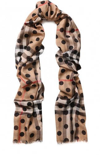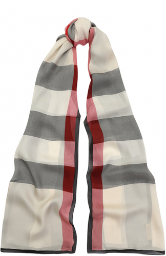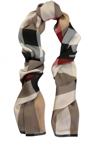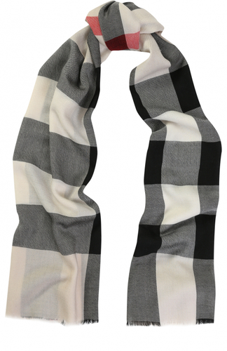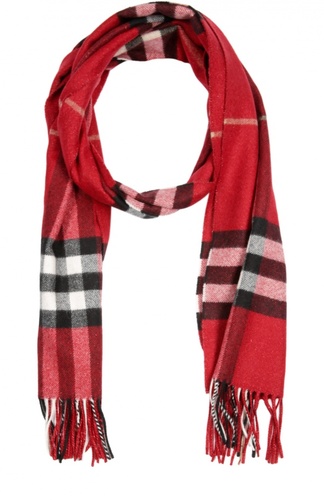 Красный шарф в клетку, знаковую для марки, основанной Томасом Берберри, вошел в весенне-летнюю коллекцию 2016 года. Для производства аксессуара, выполненного вручную, использован мягкий, приятный на ощупь кашемир с добавлением металлизированной нити.