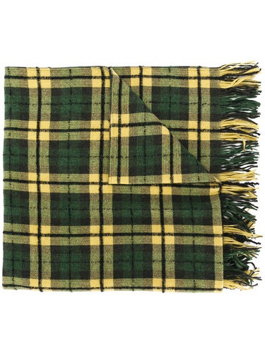 Зеленый с желтым шарф из микса натуральной шерсти, мохера и альпаки в клетку от Our Legacy.