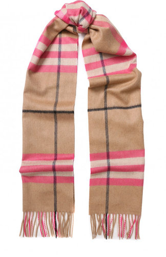 Розовый с черным кашемировый шарф в клетку от Burberry.