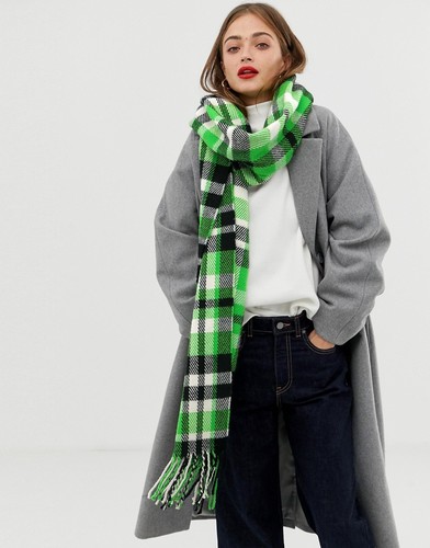 Шарф ASOS Collection Легкий трикотаж Мягкая пряжа Клетчатый дизайн Кисточки на концах Стиль oversize Машинная стирка 100% акрил Длина: 148 см Ширина: 148 см