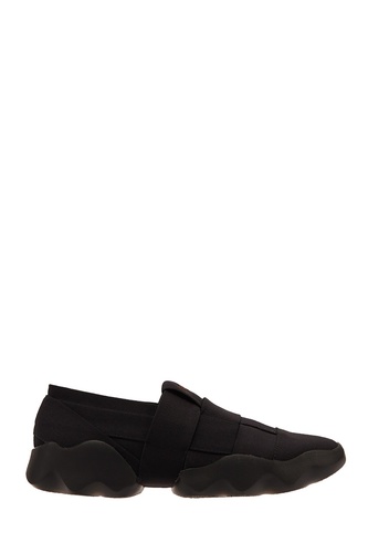 Легкие текстильные сникеры черного цвета, вдохновленные урбанистическим футуризмом. Эластичные перекрещенные ремешки. Массивная фигурная платформа. Съемные стельки. Состав: верх: 100 %Текстиль