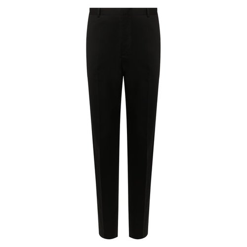 Укороченные черные брюки со стрелками вошли в коллекцию сезона осень-зима 2019 года. Мастера марки, основанной Джил Сандер, выполнили модель из плотного и слегка блестящего текстиля на основе полиэстера с добавлением тонкого хлопка. За счет такого соста.