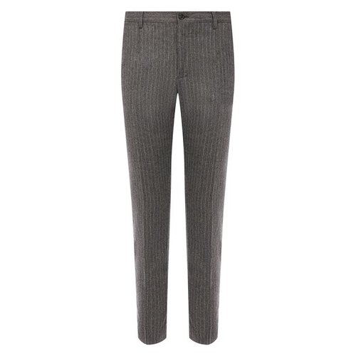 Доменико Дольче и Стефано Габбана включили в осенне-зимнюю коллекцию 2019 года серые брюки в узкую полоску. Слегка укороченную модель прямого кроя выполнили из мягкой тонкой шерсти с добавлением волокон полиамида. Лаконичное изделие со стрелками предста.