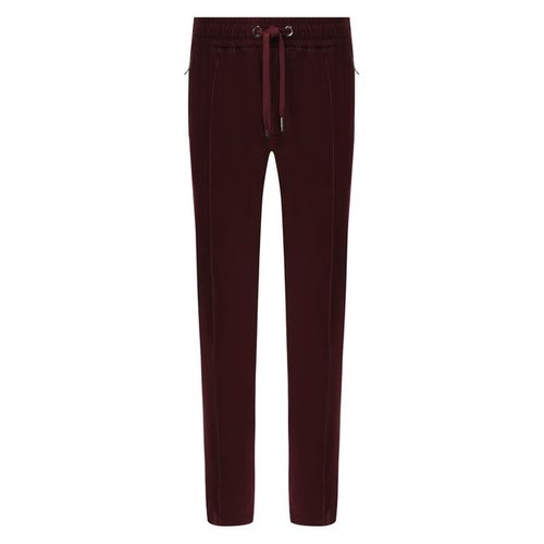 Бордовые брюки вошли в коллекцию сезона осень-зима 2019 года. Для создания слегка укороченной модели с прошитыми стрелками Доменико Дольче и Стефано Габбана выбрали фактурный хлопковый вельвет. Посадку на талии удобно регулировать шнуром, продетым в шир.